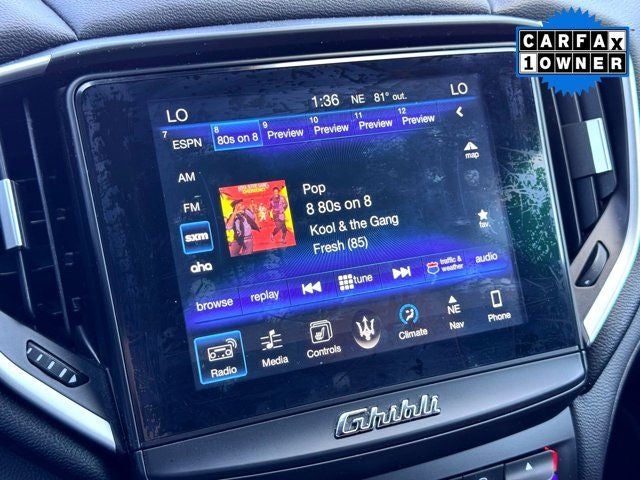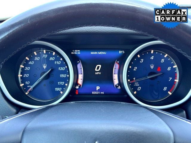 Local Trade, Leather, Heated Seats, RWD, Apple CarPlay/Android Auto, Auto-dimming door mirrors, Brake assist, Bumpers: body-color, Delay-off headlights, Electronic Stability Control, Exterior Parking Camera Rear, Heated door mirrors, High intensity discharge headlights: Bi-Xenon, Memory seat, Panic alarm, Power door mirrors, Radio data system, Radio: Maserati Touch Control Plus, Rain sensing wipers, Rear fog lights, Remote keyless entry, Security system, Speed control, Speed-Sensitive Wipers, Steering wheel memory, Turn signal indicator mirrors, Variably intermittent wipers, Wheels: 19 Poseidone Alloy.