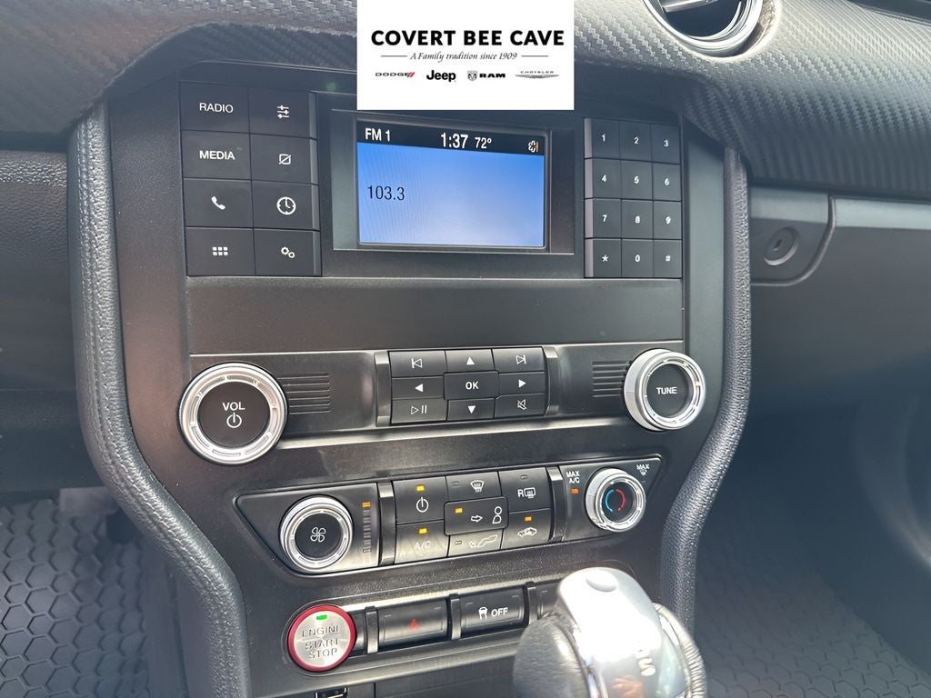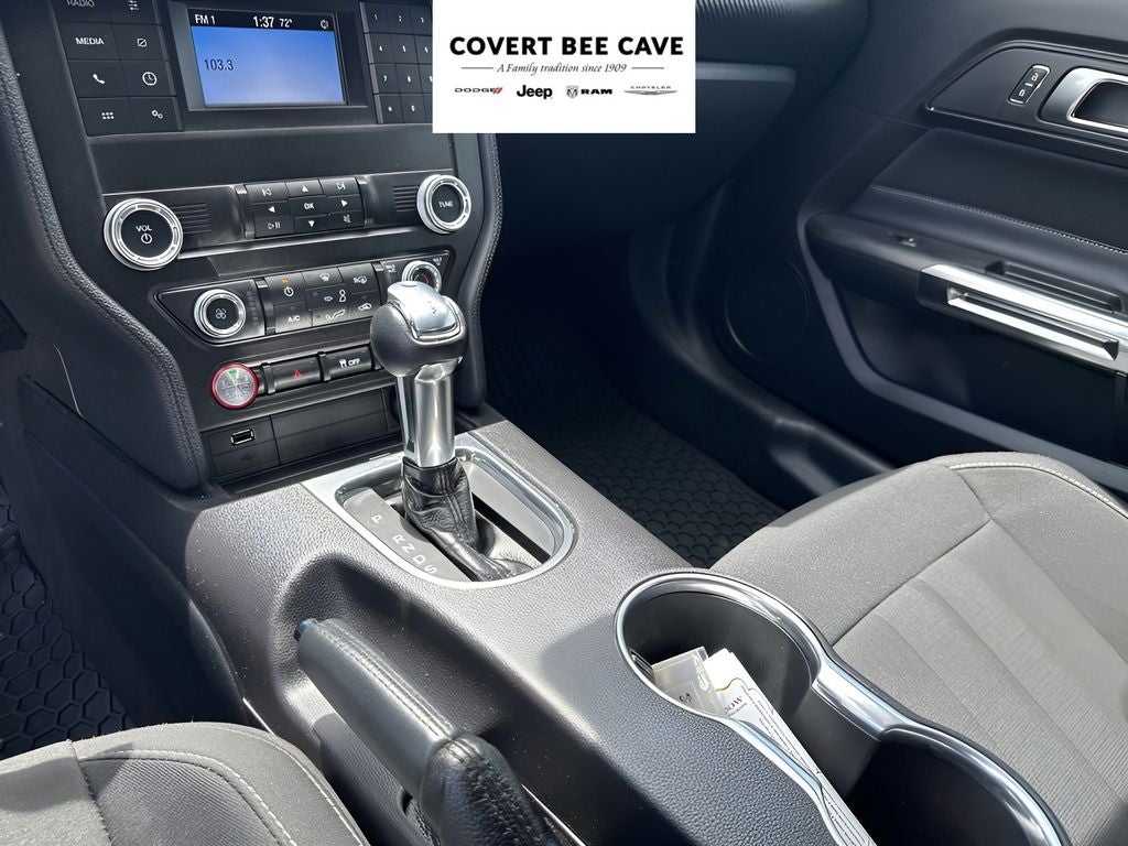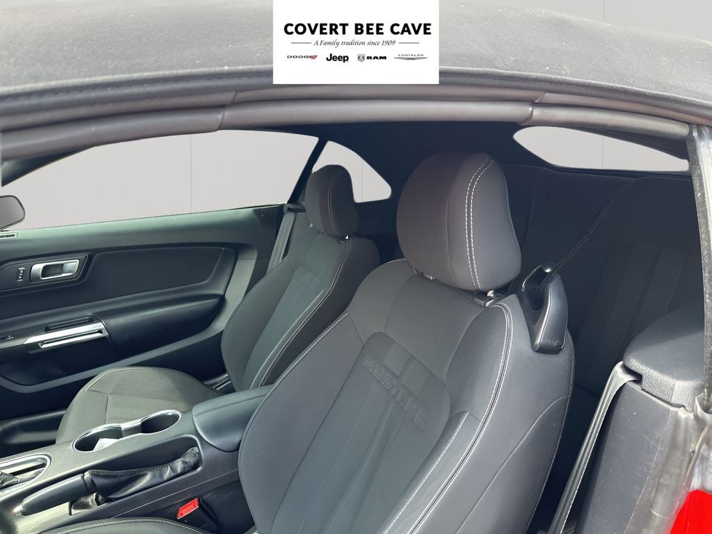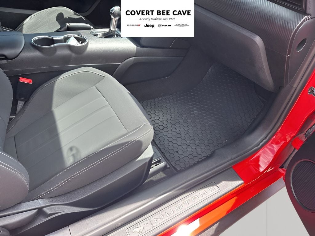 The interior of this Mustang is well-equipped, featuring the SYNC 3 infotainment system with voice recognition, Apple CarPlay, and Android Auto compatibility. Enjoy the convenience of steering wheel-mounted audio controls, cruise control, and power windows and door locks. Safety features include dual front and side impact airbags, ABS brakes, and an electronic stability control system.