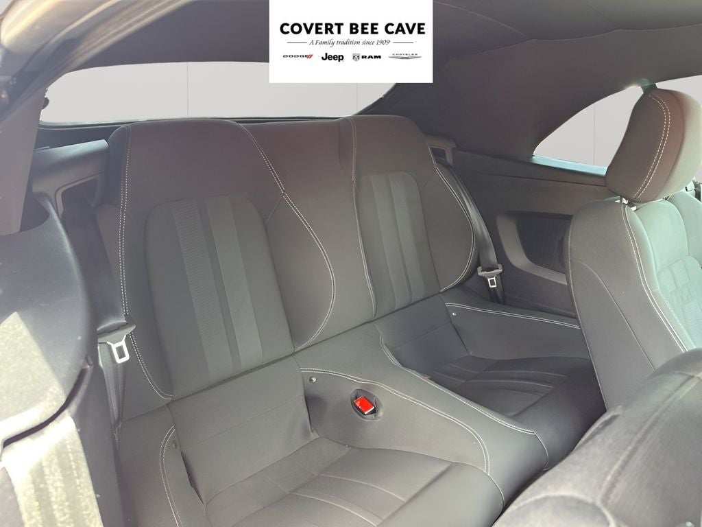 This Mustang EcoBoost delivers an exhilarating driving experience with its turbocharged engine and responsive handling. The 10-speed automatic transmission provides smooth and efficient power delivery, while the limited-slip rear differential ensures confident cornering and traction. The Mustang's iconic style is further enhanced by the over-the-top racing stripe and 18-inch machined-face aluminum wheels, giving this coupe a bold and aggressive appearance.