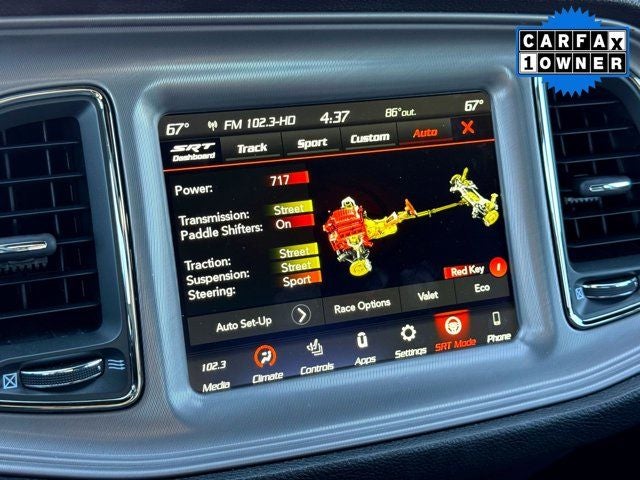 RWD, BLIND SPOT MONITORING, CLEAN CARFAX, COOLED SEATS, HEATED SEATS, LEATHER, LOCAL TRADE, NAVIGATION, NON SMOKER, ONE OWNER, 1-Yr SiriusXM Guardian Trial, 4-Wheel Disc Brakes, 4G LTE Wi-Fi Hot Spot, 8.4 Touchscreen Display, ABS brakes, Adaptive suspension, Air Conditioning, Anti-whiplash front head restraints, Apple CarPlay, Apple CarPlay/Android Auto, Auto-dimming Rear-View mirror, Automatic temperature control, Black Seat Belts, Body Color Exterior Mirrors, Brake assist, Bumpers: body-color, Compass, Compass Gauge, Delay-off headlights, Driver door bin, Driver vanity mirror, Dual front impact airbags, Dual front side impact airbags, Electronic Stability Control, Emergency communication system: SiriusXM Guardian, Exterior Mirrors w/Heating Element, For Details, Visit DriveUconnect.com, For More Info, Call 800-643-2112, Four wheel independent suspension, Front anti-roll bar, Front Bucket Seats, Front Center Armrest, Front dual zone A/C, Front License Plate Bracket, Front reading lights, Fully automatic headlights, Garage door transmitter, Google Android Auto, Heated door mirrors, Heated Front Seats, Heated front seats, Heated Steering Wheel, Heated steering wheel, Illuminated entry, Integrated Voice Command w/Bluetooth®, Jailbreak IP Badge, Leather Shift Knob, Low tire pressure warning, Manuf Statement of Origin, Outside temperature display, Overhead airbag, Overhead console, Panic alarm, ParkView Rear Back-Up Camera, Passenger door bin, Passenger vanity mirror, Power door mirrors, Power driver seat, Power steering, Power windows, Quick Order Package 26C Hellcat Widebody Jailbreak, Radio: Uconnect 4C w/8.4 Display, Rear anti-roll bar, Rear reading lights, Rear seat center armrest, Rear window defroster, Remote keyless entry, Security system, Shark Fin Antenna, Speed control, Speed-sensing steering, Split folding rear seat, Spoiler, Sport steering wheel, SRT Hellcat Logo Houndstooth Seats, Steering wheel mounted audio controls, Tachometer, Telescoping steering wheel, Tilt steering wheel, Traction control, Trip computer, USB Host Flip, Wheels: 20 x 11.0 Devil's Rim Granite, Widebody Competition Suspension, Widebody Fender Flares.