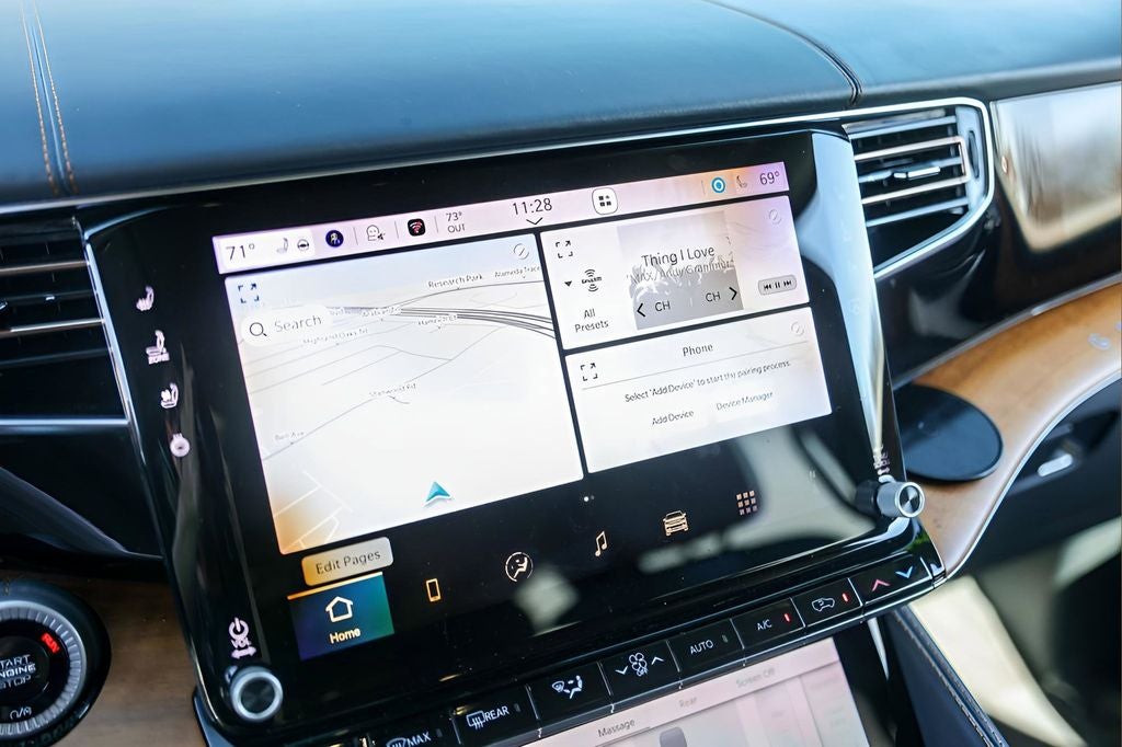 The Grand Wagoneer acts as a high-tech command center, utilizing a staggering array of screens to keep every passenger connected.