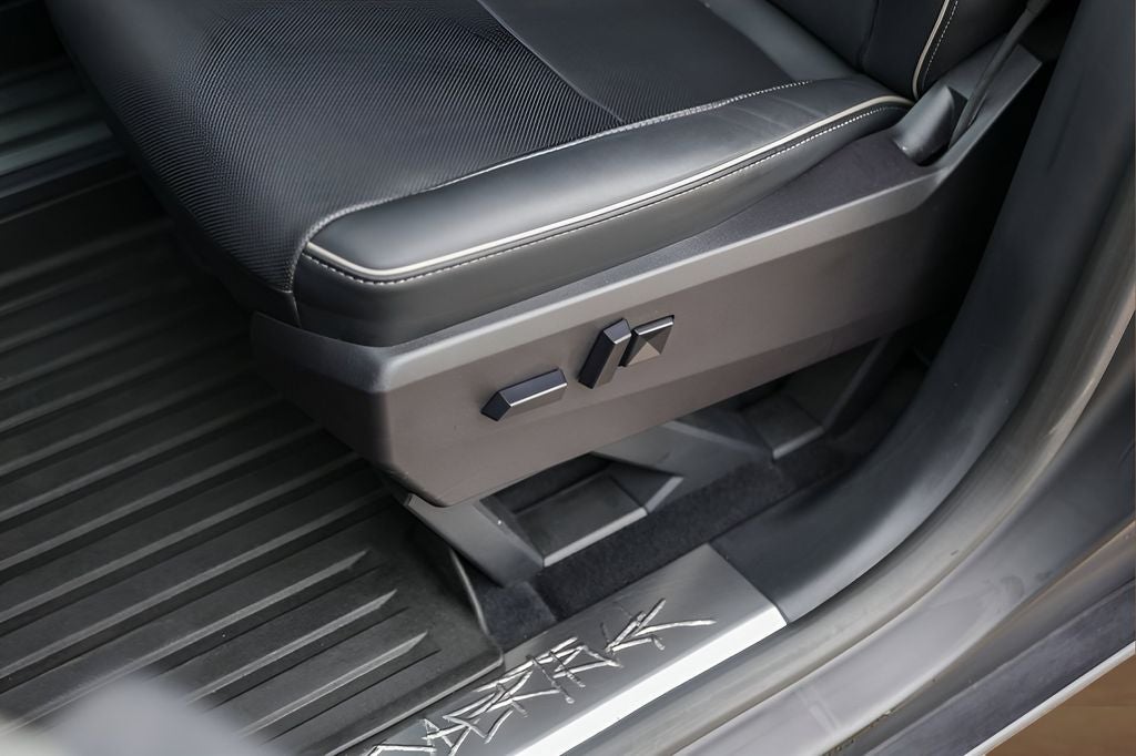 Premium Accessories: Includes 3D All-Weather Interior Liners, Gear Locker Dividers, a Glass Roof Sunshade, and L-Track accessories (hooks and bottle opener) for the bed.