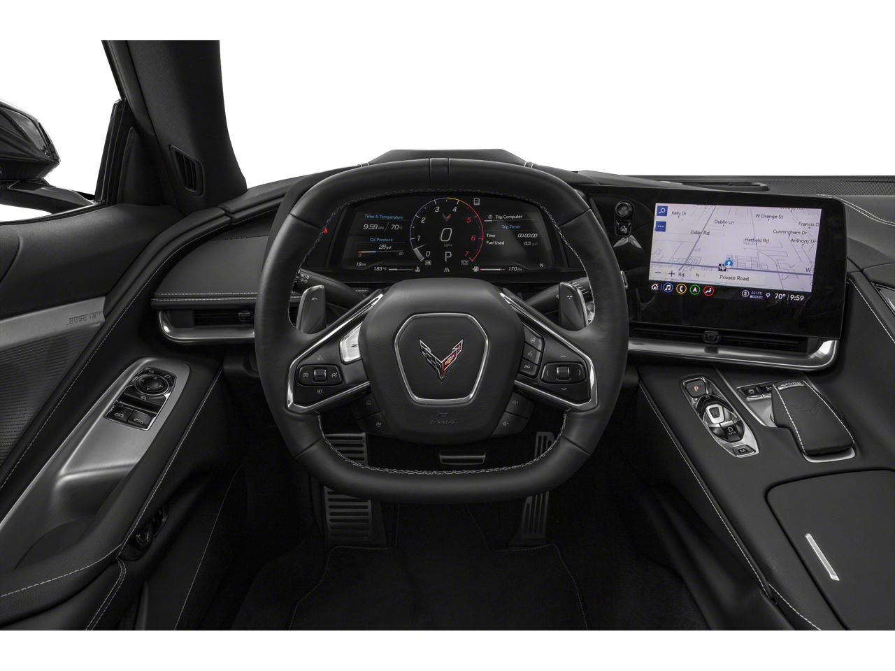 The 3LT trim’s standard features list is notably dense: Bose Performance Series sound, wireless device charging, full navigation, dual-zone automatic climate, memory driver and passenger convenience package, and custom leather-wrapped interior come with no surcharge. Heated and ventilated GT2 bucket seats, a heated steering wheel, and a performance data recorder further elevate comfort and usability, while the Chevrolet Infotainment 3 Premium system delivers seamless connectivity.