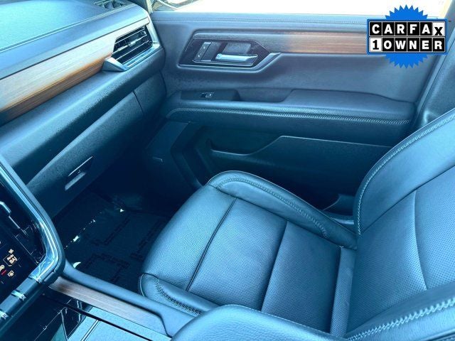 4WD, BLIND SPOT MONITORING, CLEAN CARFAX, COOLED SEATS, HEATED SEATS, LEATHER, LOCAL TRADE, NAVIGATION, NON SMOKER, ONE OWNER, SECOND ROW BUCKETS, 15 Diagonal Multi-Color Head-Up Display, 3.23 Rear Axle Ratio, 3rd row seats: split-bench, 4-Way Power Driver Lumbar Seat Adjuster, 4-Way Power Front Passenger Lumbar Seat Adjuster, 4-Wheel Disc Brakes, ABS brakes, Adaptive suspension, Air Conditioning, Apple CarPlay/Android Auto, Auto High-beam Headlights, Auto-dimming door mirrors, Auto-dimming Rear-View mirror, Auto-leveling suspension, Automatic temperature control, AutoSense Hands-Free Power Liftgate, Bodyside moldings, Bose 10-Speaker Surround with CenterPoint, Brake assist, Bright Front and Rear Door Sill Plates, Bumpers: body-color, Compass, Delay-off headlights, Driver door bin, Driver vanity mirror, Dual Exhaust System, Dual front impact airbags, Dual front side impact airbags, Electronic Stability Control, Emergency communication system: OnStar and GMC connected services capable, Exterior Parking Camera Rear, Four wheel independent suspension, Front anti-roll bar, Front Bucket Seats, Front Center Armrest, Front dual zone A/C, Front fog lights, Front reading lights, Fully automatic headlights, Galvano Bodyside Moldings, Garage door transmitter, Heads-Up Display, Heated door mirrors, Heated Driver and Front Passenger Seats, Heated front seats, Heated rear seats, Heated steering wheel, Illuminated entry, Low tire pressure warning, Magnetic Ride Control Suspension, Memory seat, Navigation system: GMC Connected Navigation, Occupant sensing airbag, Outside temperature display, Overhead airbag, Overhead console, Panic alarm, Passenger door bin, Passenger vanity mirror, Perforated Heather and Ventilated Driver and Front Passenger Seats, Perforated Leather Seating Surfaces, Power door mirrors, Power driver seat, Power Liftgate, Power passenger seat, Power Release 2nd Row Bucket Seats, Power steering, Power Tilt and Telescopic Steering Column, Power windows, Preferred Equipment Group 5SA, Radio: 16.8 Diagonal Premium GMC Infotainment System, Rain sensing wipers, Rear air conditioning, Rear anti-roll bar, Rear reading lights, Rear window defroster, Rear window wiper, Remote keyless entry, Security system, SiriusXM with 360L, Speed control, Speed-sensing steering, Split folding rear seat, Spoiler, Steering wheel memory, Steering wheel mounted audio controls, Tachometer, Telescoping steering wheel, Tilt steering wheel, Traction control, Trip computer, Turn signal indicator mirrors, Variably intermittent wipers, Ventilated front seats, Voltmeter, Wheels: 20 x 9 6-Spoke Polished Aluminum.